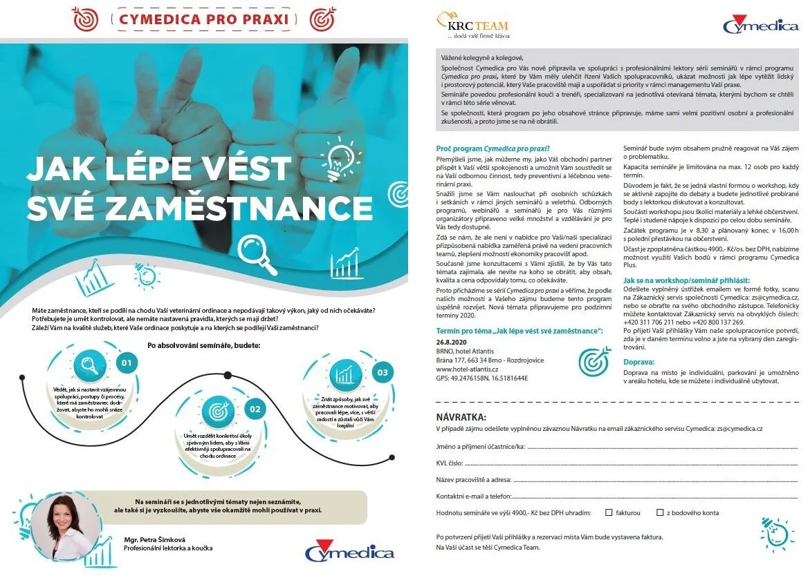 pokračujeme v naší sérii seminářů, které pořádáme ve spolupráci s agenturou KRC Team a které Vám mohou pomoci s řízením Vašich spolupracovníků, mohou Vám ukázat možnosti jak lépe vytěžit lidský i prostorový potenciál, který Vaše pracoviště mají a uspořádat si priority v rámci managementu Vaší praxe. Téma je „JAK LÉPE VÉST SVÉ ZAMĚSTNANCE“.