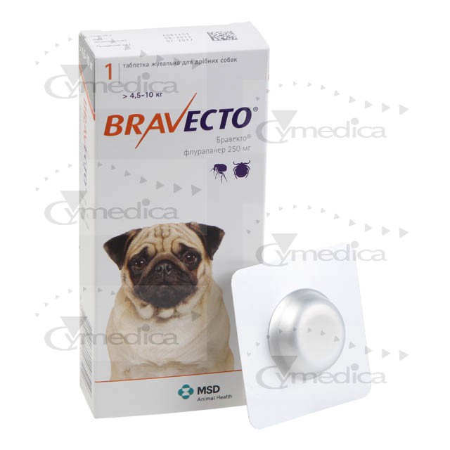 Собакам, масою тіла більше 56 кг необхідно вводити відповідну комбінацію двох таблеток. Завдяки вмісту в таблетках ароматизаторів таблетки добре поїдаються собаками. За необхідності таблетка може згодовуватися з кормом або її кладут ь на корінь язика. Необхідно переконат ись у проковтуванні таблетки т вариною. Не допускається розламування або ділення таблеток. Препарат Бравекто® забезпечує захист тварини від бліх і кліщів до 12 тижнів.