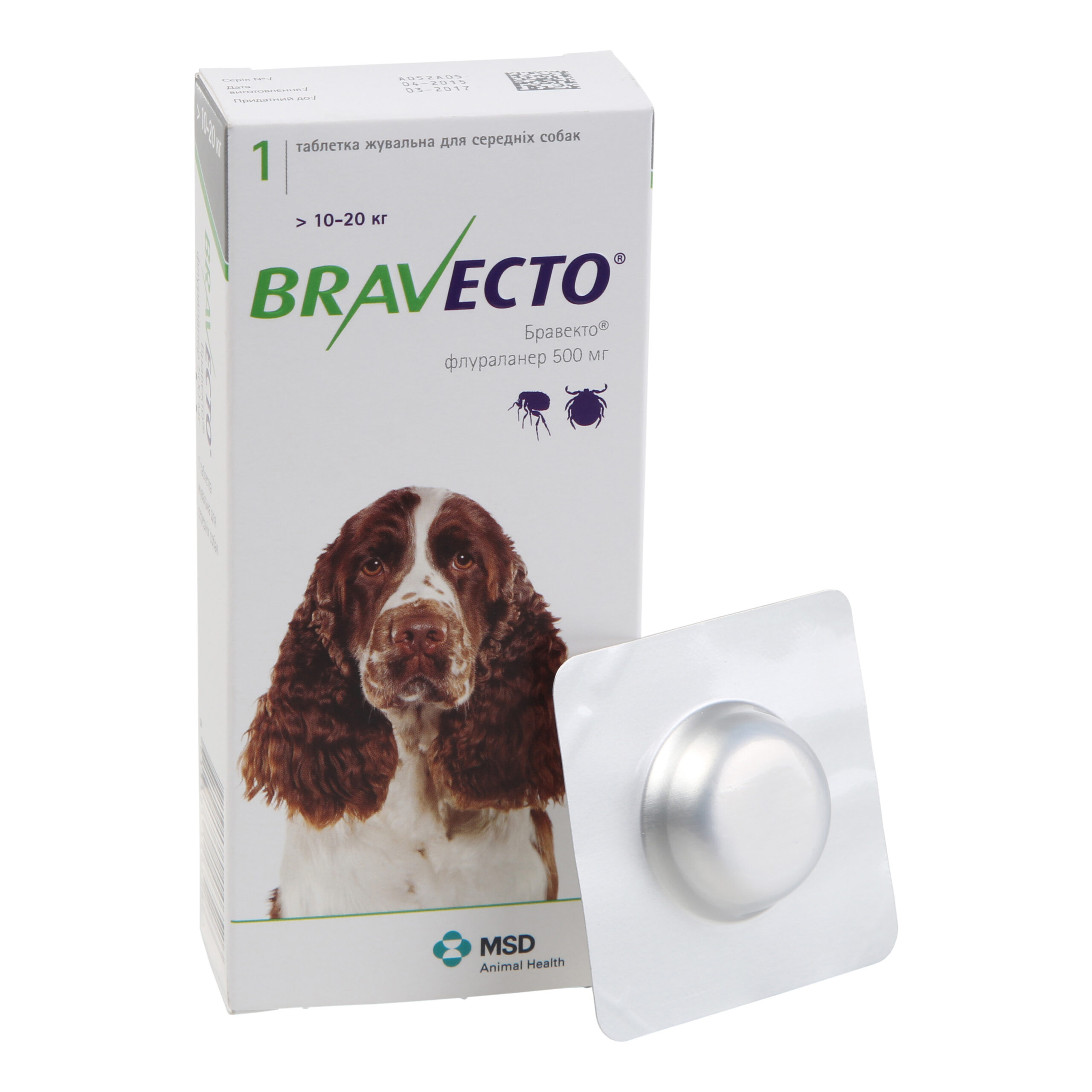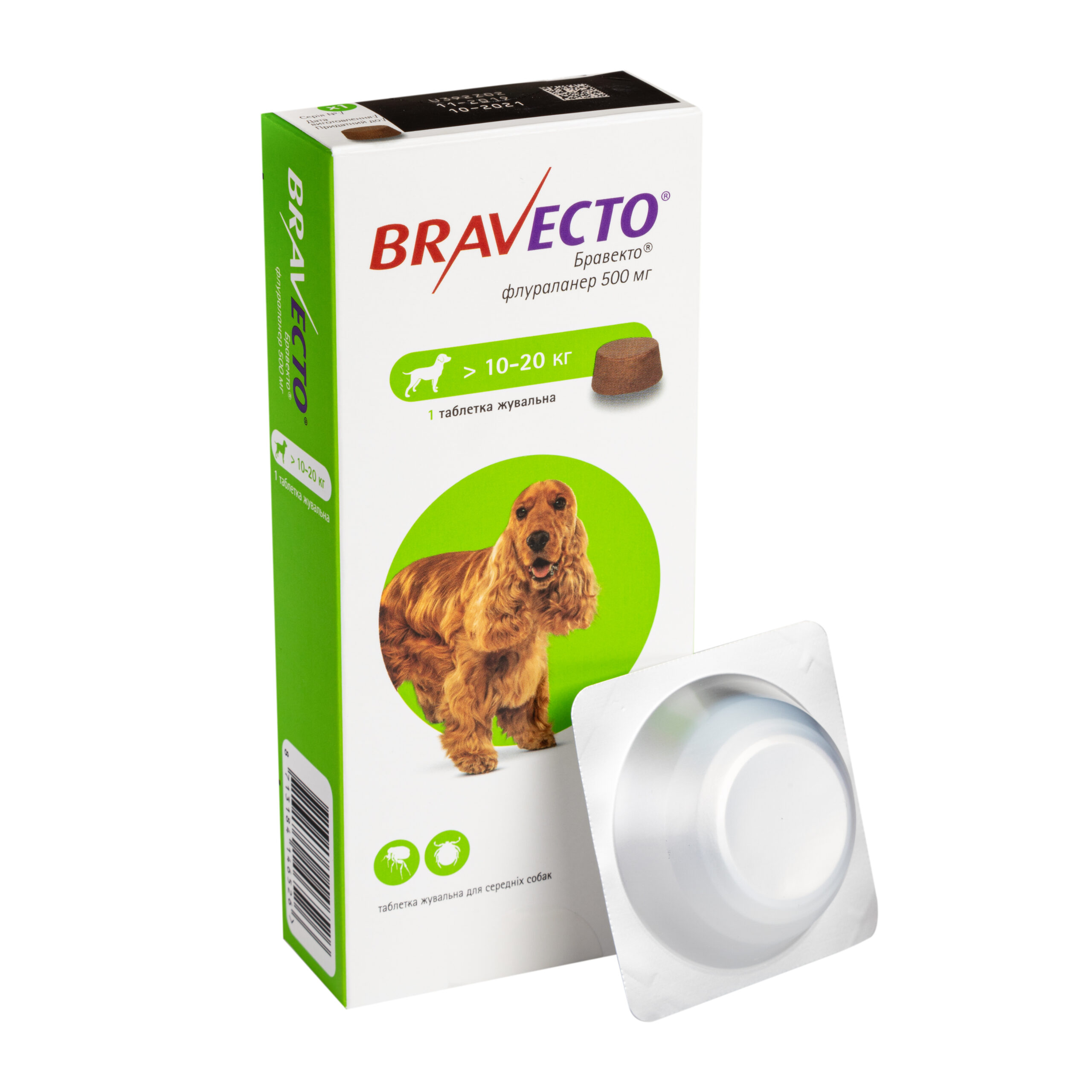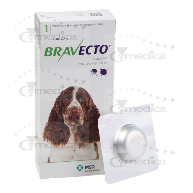 Собакам, масою тіла більше 56 кг необхідно вводити відповідну комбінацію двох таблеток. Завдяки вмісту в таблетках ароматизаторів таблетки добре поїдаються собаками. За необхідності таблетка може згодовуватися з кормом або її кладут ь на корінь язика. Необхідно переконат ись у проковтуванні таблетки т вариною. Не допускається розламування або ділення таблеток. Препарат Бравекто® забезпечує захист тварини від бліх і кліщів до 12 тижнів.