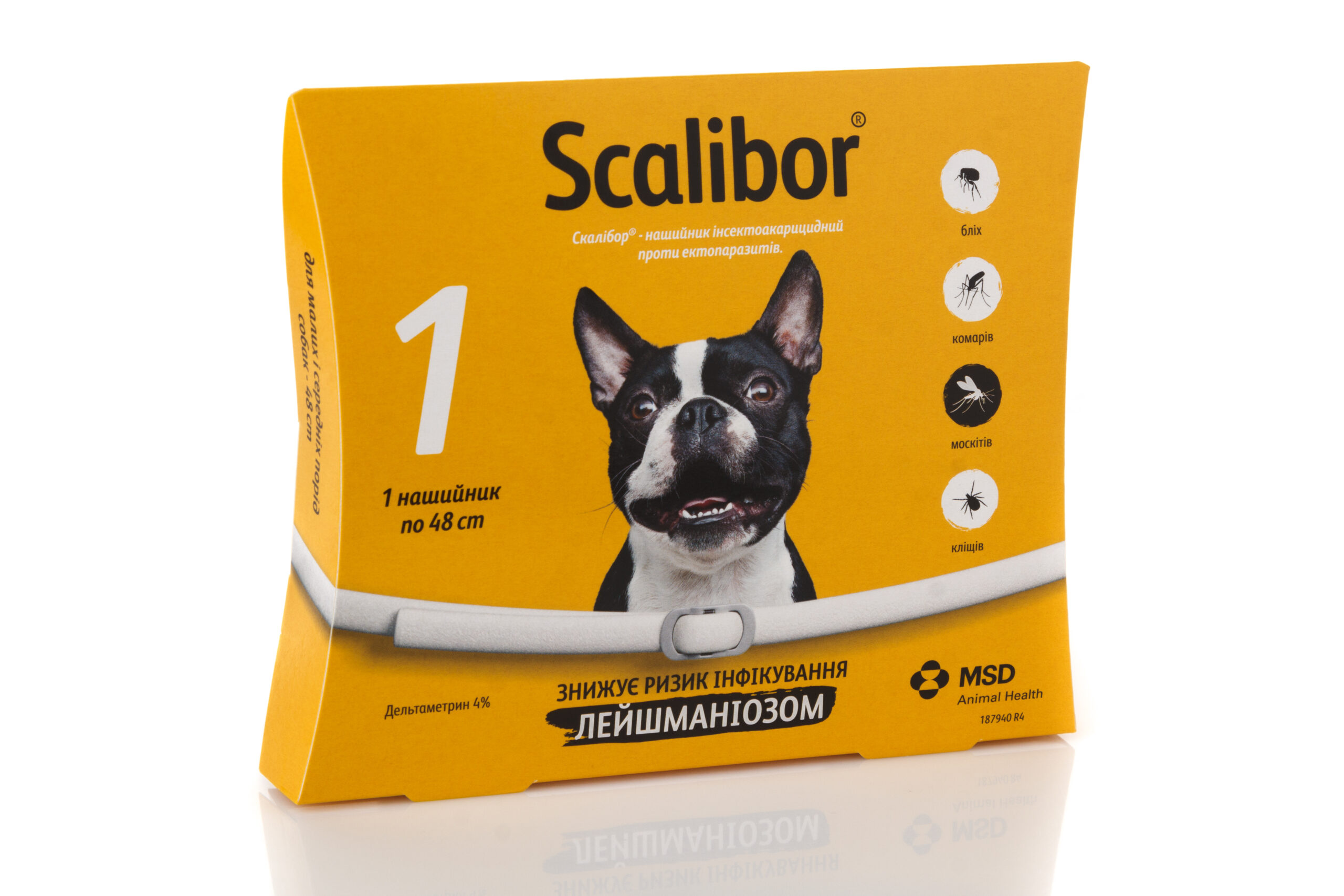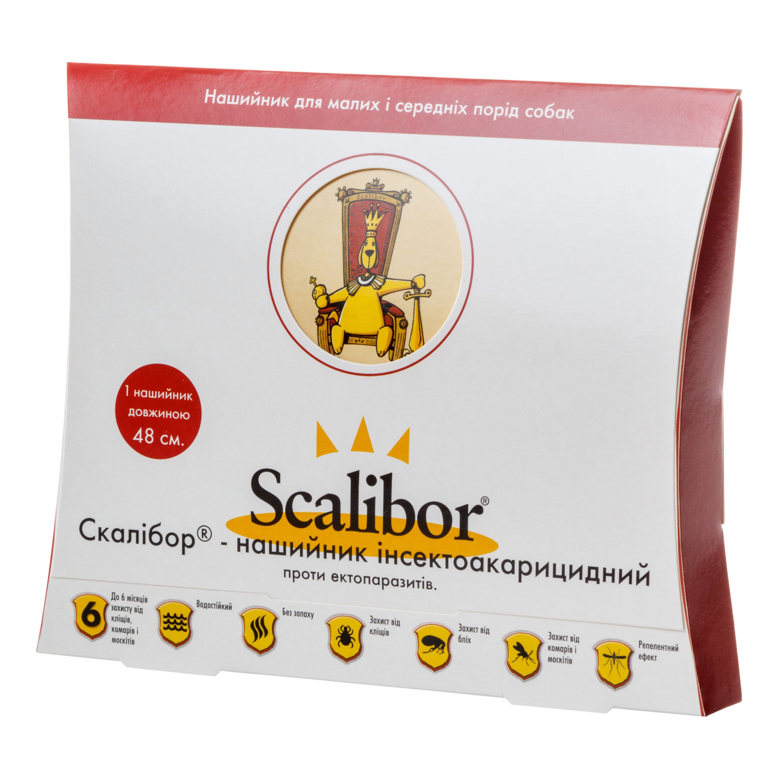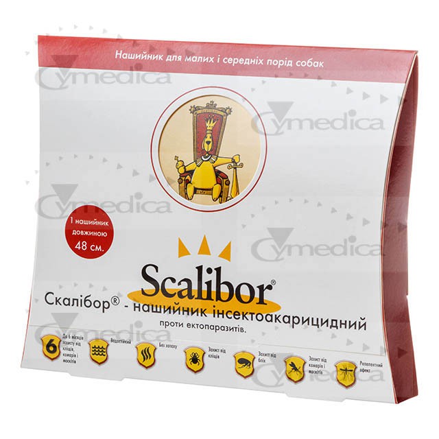 Скалібор® – нашийник інсектоакарицидний проти ектопаразитів, залежно від маси тіла тварин, випускають таких розмірів: