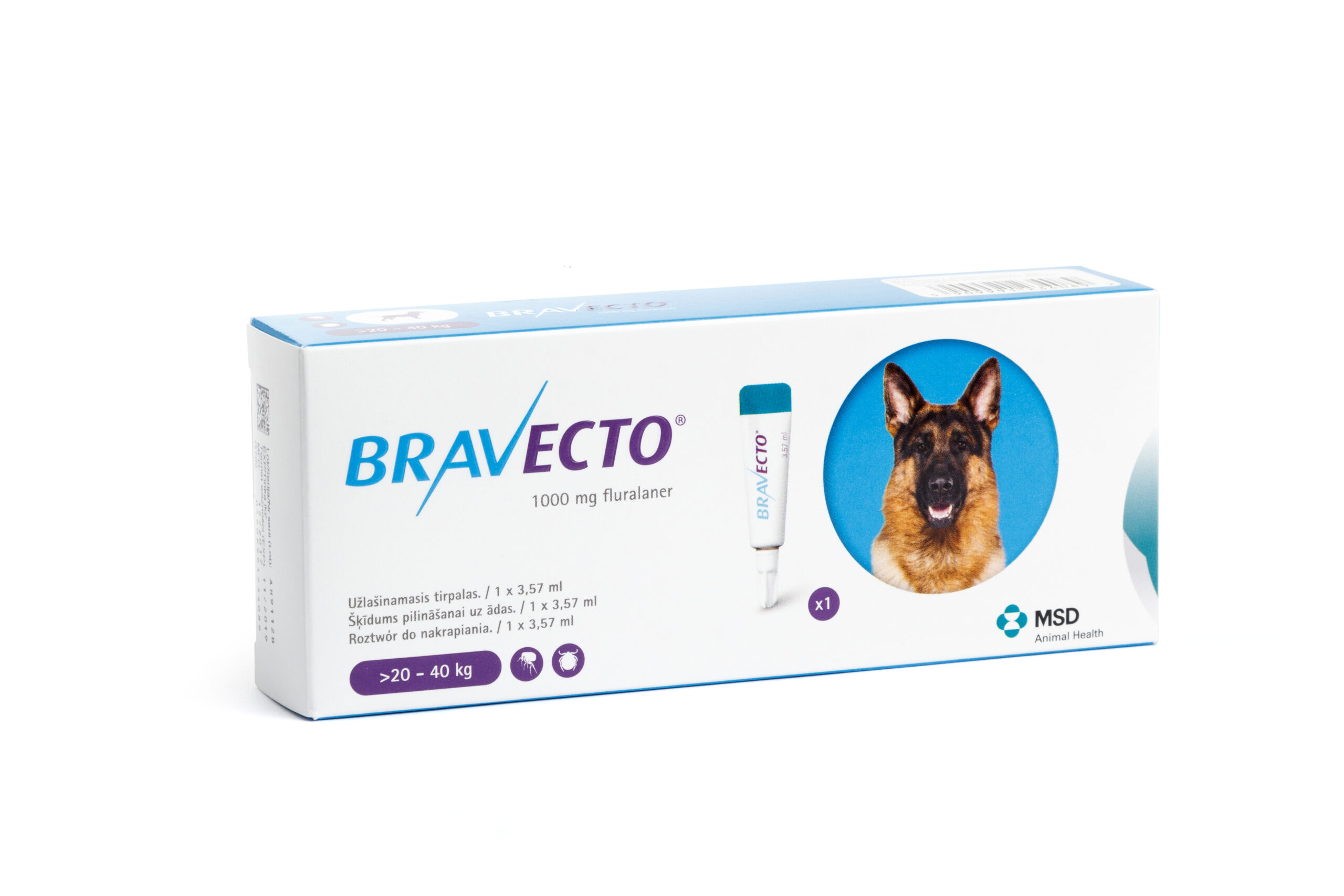 Симптомів передозування не спостерігали при застосуванні препарату Бравекто® спот-он цуценя там віком 8-9 тижнів і масою тіла 2,0-3.7 кг у дозі, що у 5 разів перевищувала рекомендован) (56 мг. 168 мг і 280 мг флураланеру/ кг маси тіла) при 3-х разовому застосуванні з коротшими інтервалами (8 тижнів замість рекомендованих інтервалів у 12 тижнів). Не спостерігали ніяких порушень репродуктивної функції і негативного впливу па життєздатність потомства при пероральному застосуванні флураланеру собакам породи бігль у дозі, що у три рази перевищувала максимально рекомендовану дозу (до 168 мг флураланерукг маси тіла).