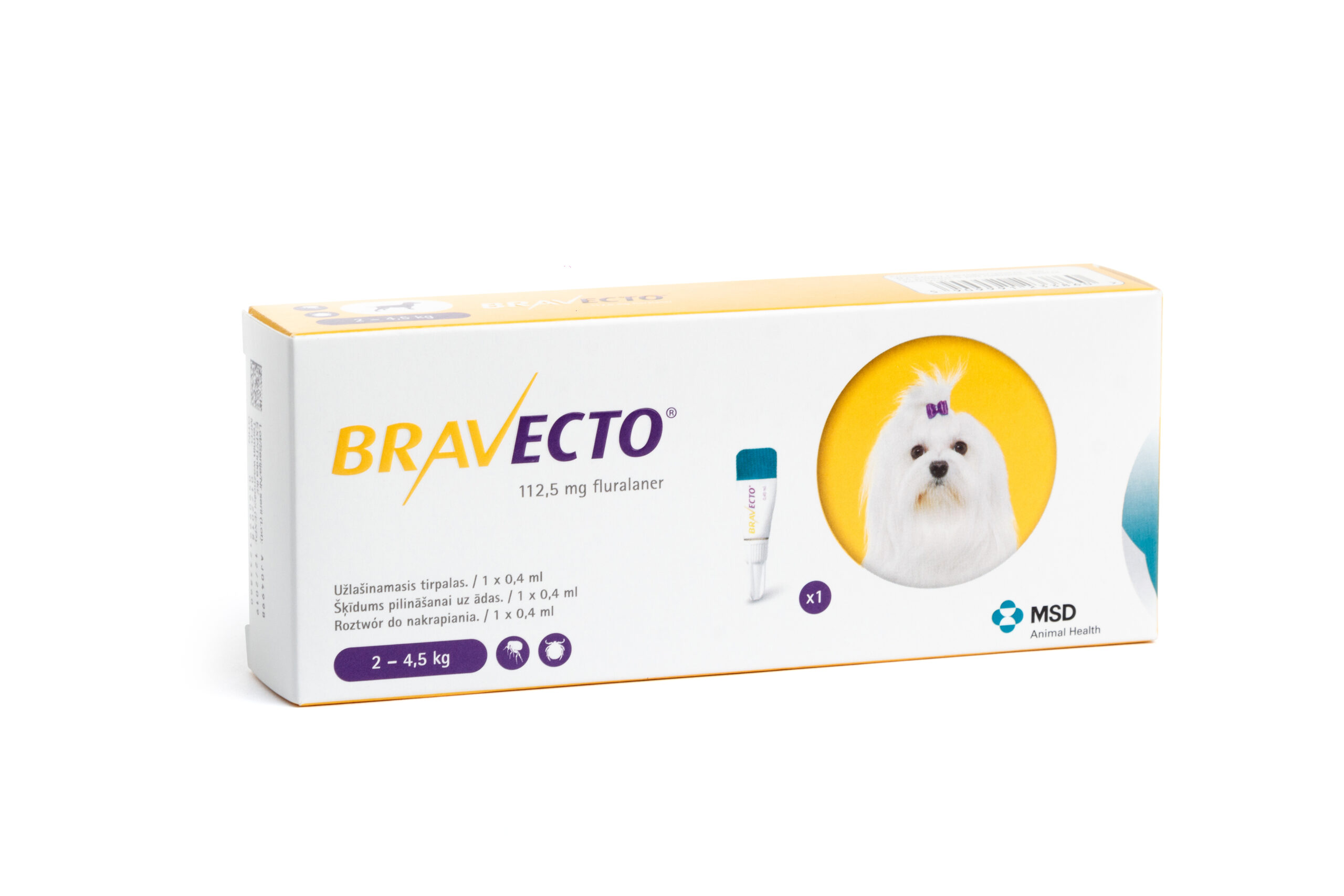 Симптомів передозування не спостерігали при застосуванні препарату Бравекто® спот-он цуценя там віком 8-9 тижнів і масою тіла 2,0-3.7 кг у дозі, що у 5 разів перевищувала рекомендован) (56 мг. 168 мг і 280 мг флураланеру/ кг маси тіла) при 3-х разовому застосуванні з коротшими інтервалами (8 тижнів замість рекомендованих інтервалів у 12 тижнів). Не спостерігали ніяких порушень репродуктивної функції і негативного впливу па життєздатність потомства при пероральному застосуванні флураланеру собакам породи бігль у дозі, що у три рази перевищувала максимально рекомендовану дозу (до 168 мг флураланерукг маси тіла).