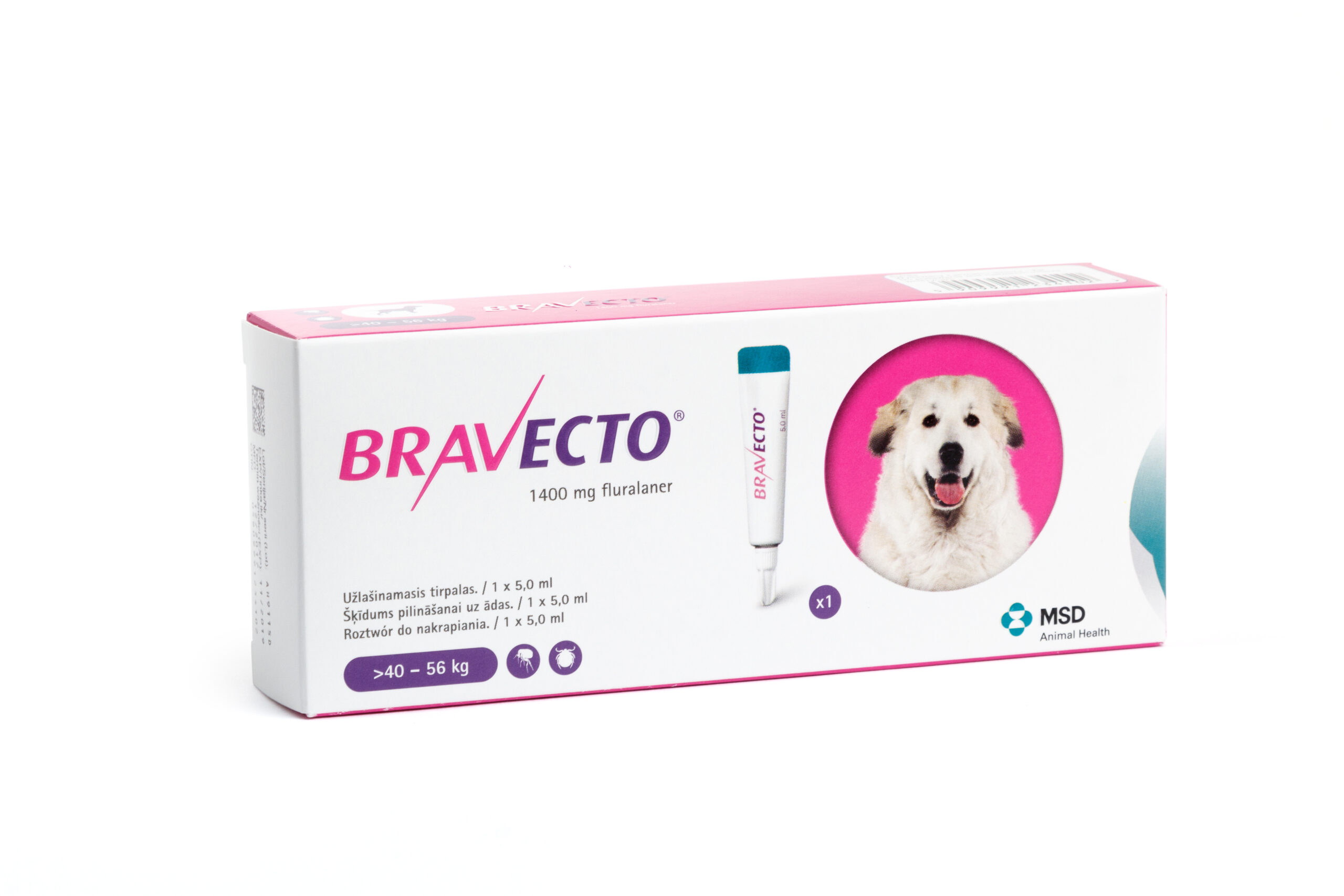 Симптомів передозування не спостерігали при застосуванні препарату Бравекто® спот-он цуценя там віком 8-9 тижнів і масою тіла 2,0-3.7 кг у дозі, що у 5 разів перевищувала рекомендован) (56 мг. 168 мг і 280 мг флураланеру/ кг маси тіла) при 3-х разовому застосуванні з коротшими інтервалами (8 тижнів замість рекомендованих інтервалів у 12 тижнів). Не спостерігали ніяких порушень репродуктивної функції і негативного впливу па життєздатність потомства при пероральному застосуванні флураланеру собакам породи бігль у дозі, що у три рази перевищувала максимально рекомендовану дозу (до 168 мг флураланерукг маси тіла).