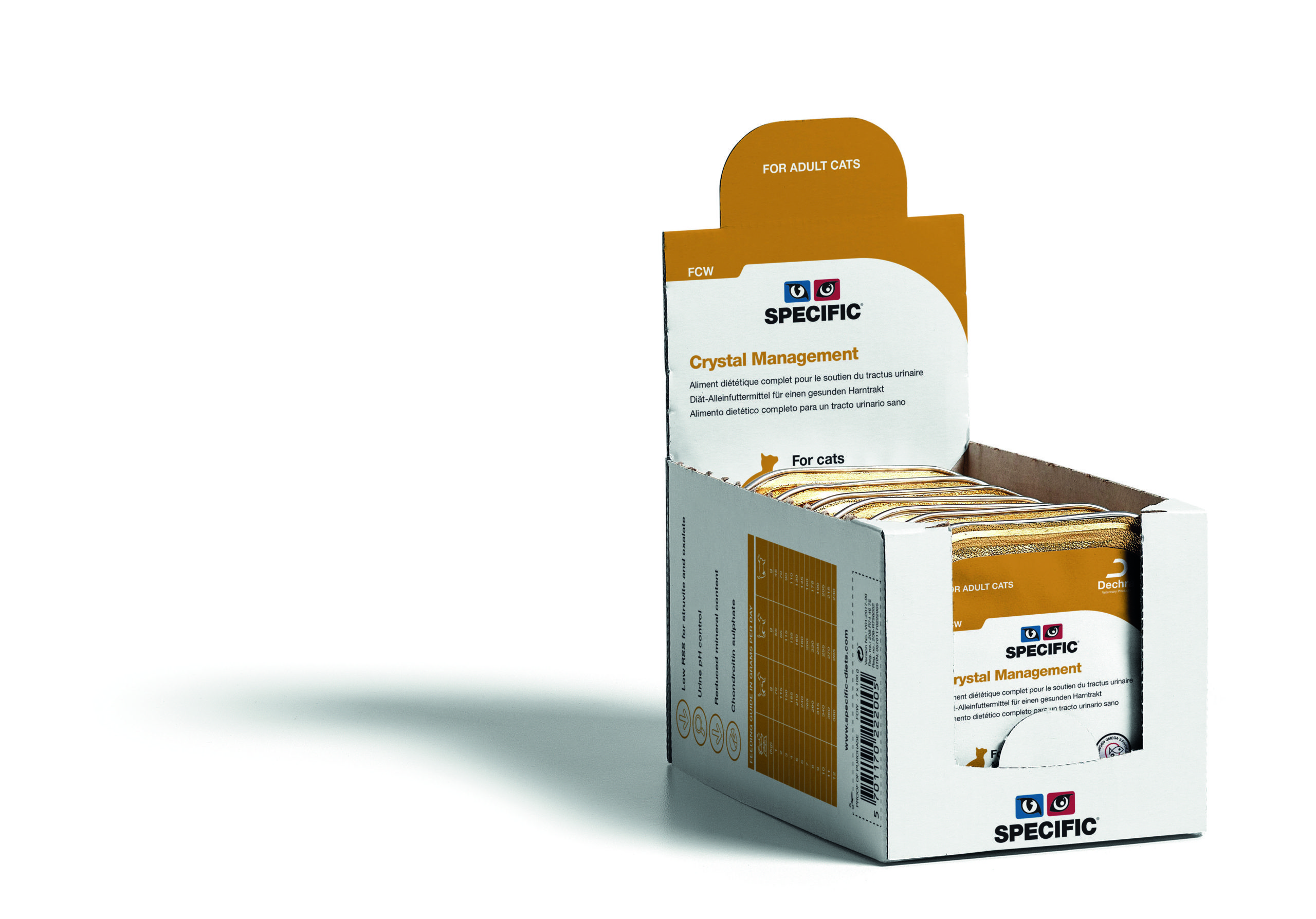 – Для котів із рецидивом ідіопатичного циститу має віддаватись перевага SPECIFIC FCW/FCW-P для контролю кристалів або SPECIFIC FXW/FXW-P для дорослих котів.