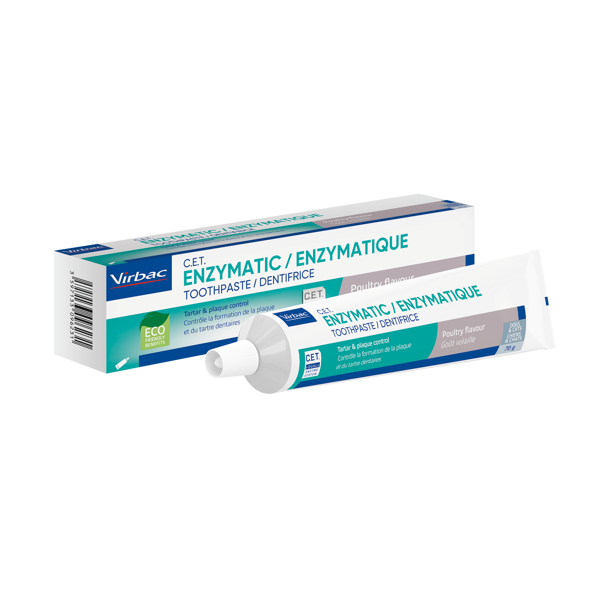 Спеціально розроблена для собак і котів, має м’який абразивний ефект, містить технологію C.E.T. ТЕХНОЛОГІЯ C.E.T.® – комплекс ферментів, що підсилює природний захист ротової порожнини. Комплекс C.E.T. складається з двох ферментів(глюкозооксидаза, лактопероксидаза) + тіоціанат. Ця технологія має такі властивості: